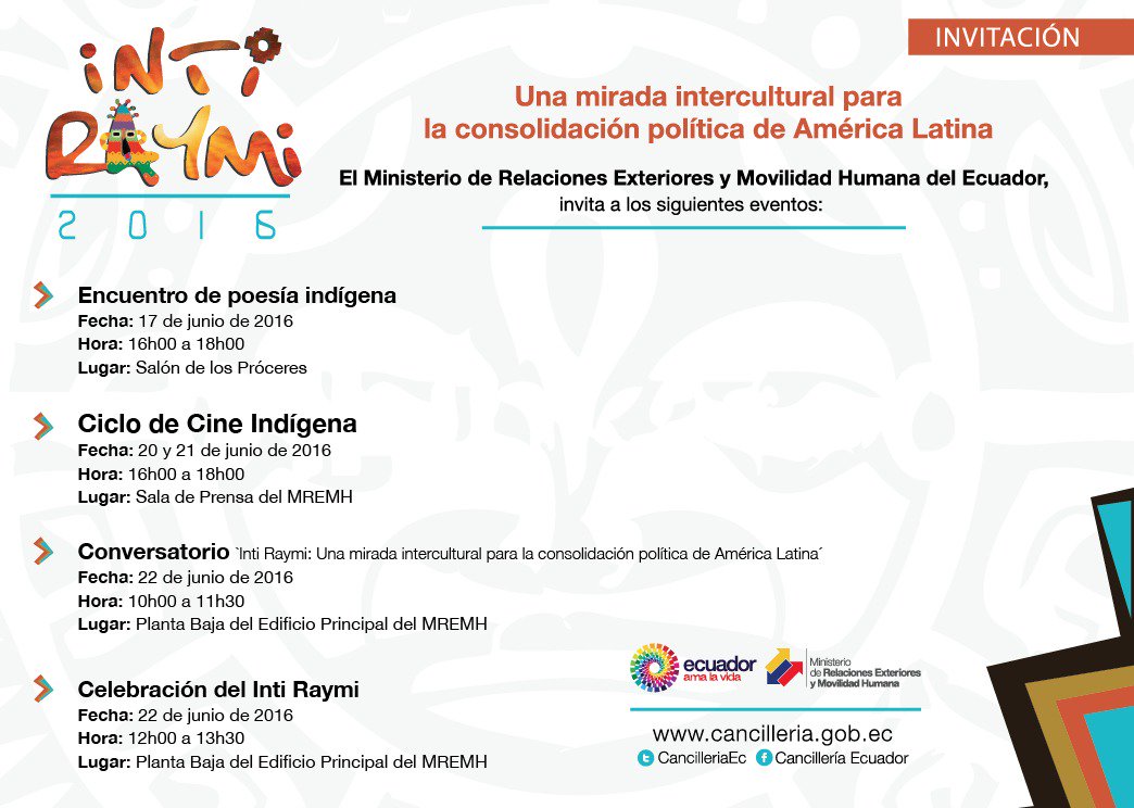 Invitamos al Encuentro de Poesía Indígena en el marco de la conmemoración de #IntiRaymi. Hoy 16h00 en @CancilleriaEcpic.twitter.com/vNSAfqHIo5