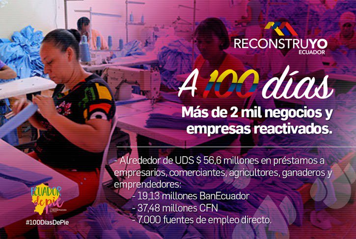 A 100 días del #SismoEcuador más de 2 mil negocios y empresas se han reactivado. #100DíasDePiepic.twitter.com/eOSa1kPpMg
