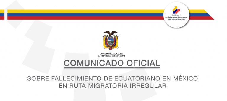 [COMUNICADO OFICIAL] Sobre fallecimiento de ecuatoriano en México en ruta migratoria irregular
