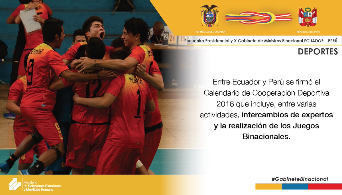 Realización de Juegos Binacionales, es parte del Calendario de Cooperación Deportiva entre Ecuador y Perú #GabineteBinacionalpic.twitter.com/zsrXEtuU1q