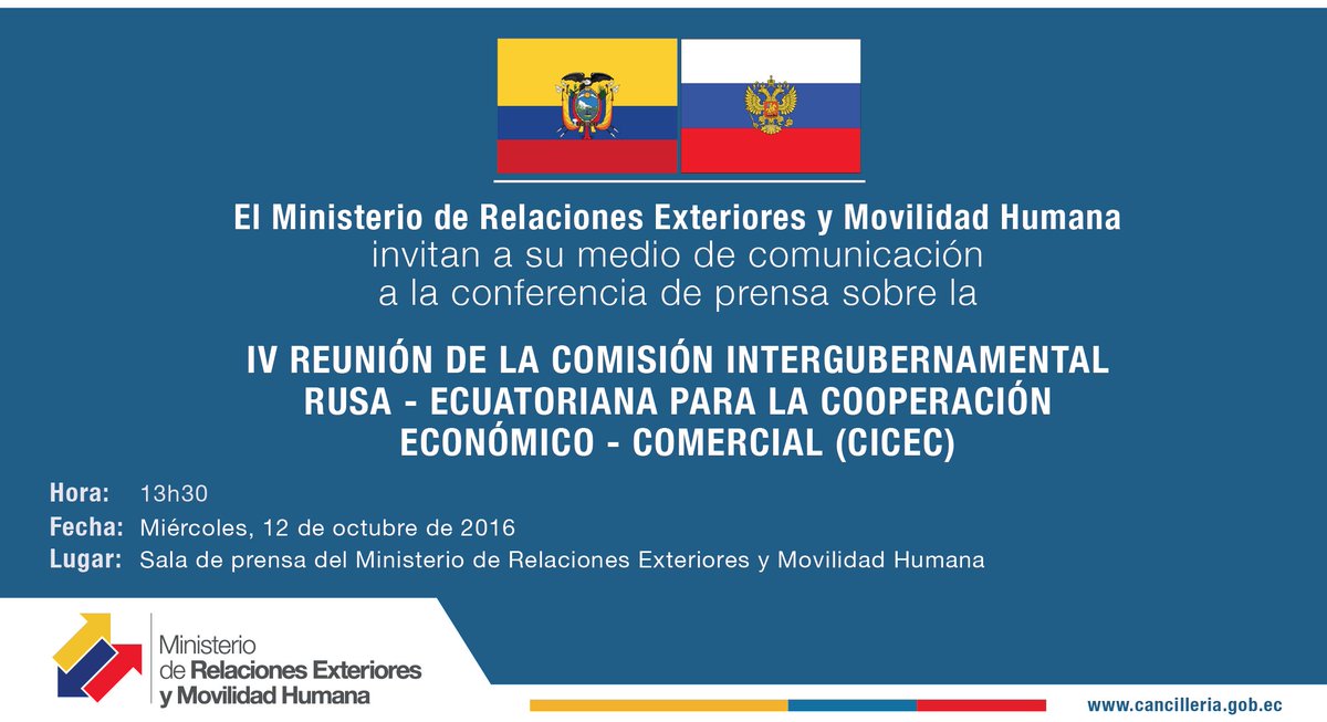 Conferencia de Prensa | IV Reunión de Comisión Intergubernamental Rusa-Ecuatoriana para la Cooperación Económico y Comercial (CICEC)pic.twitter.com/jBq7k3BXXf