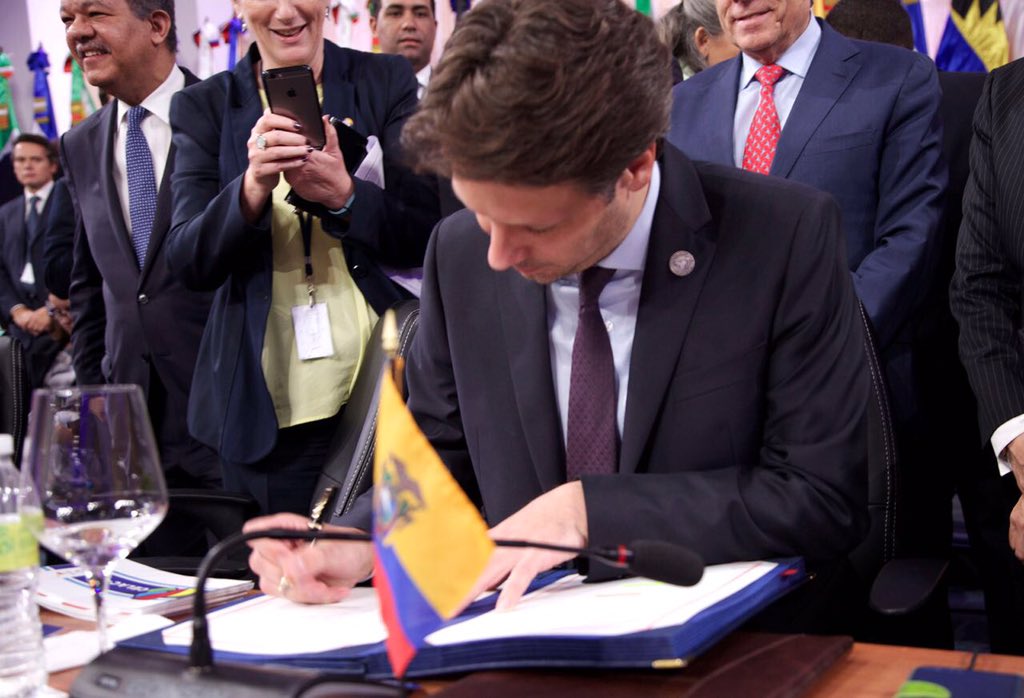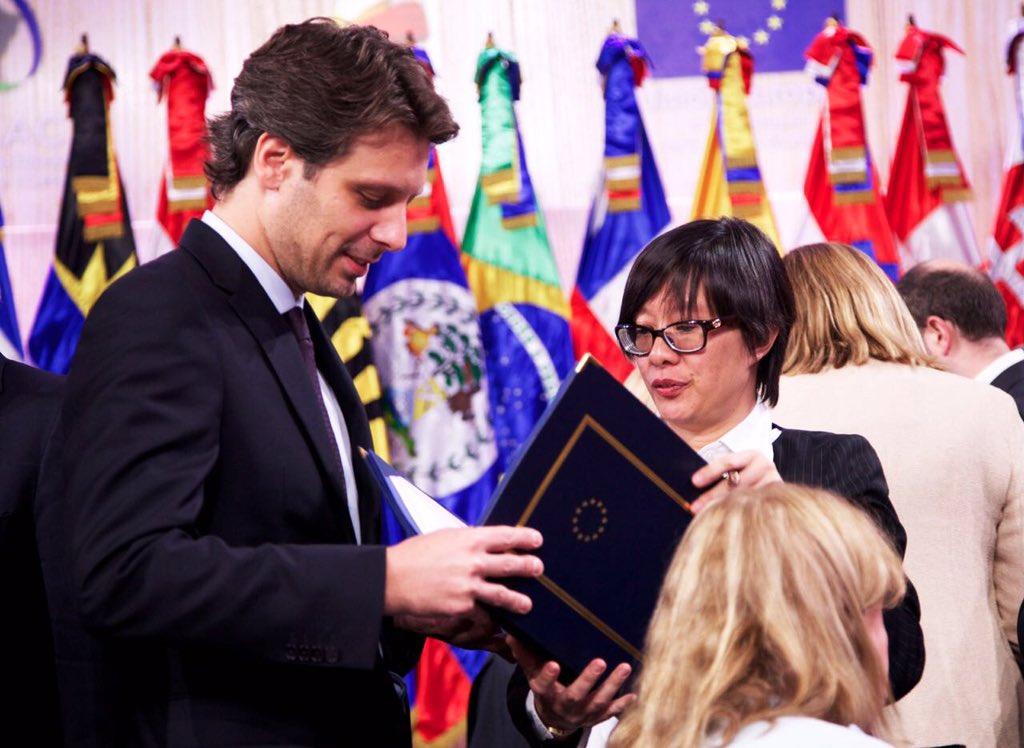 En Reunión de Ministros de Relaciones Exteriores #CELACUE2016, Canciller @GuillaumeLong firma convenio constitutivo de la Fundación EU-LACpic.twitter.com/s0mgyy4vbo