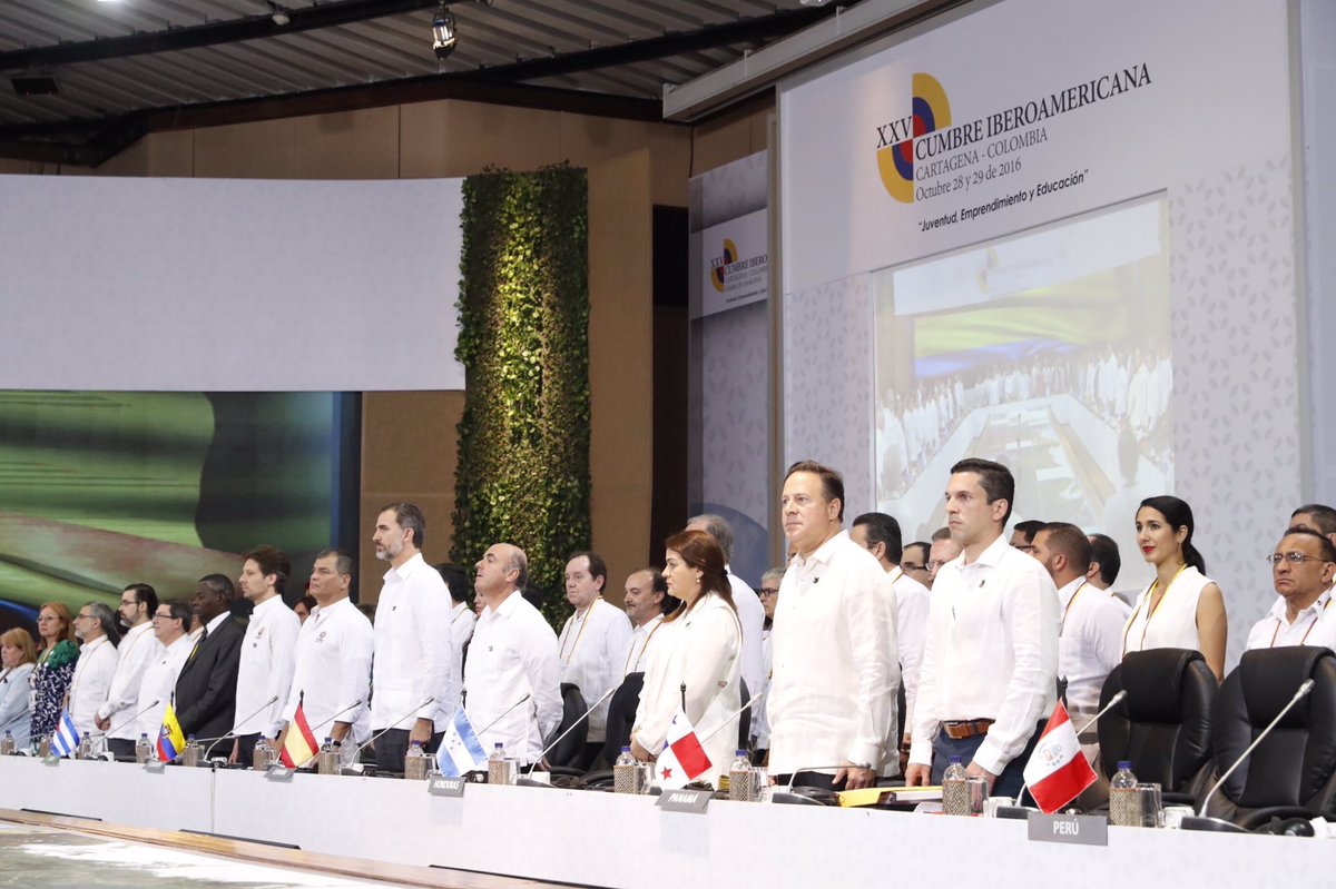 Canciller @GuillaumeLong acompaña al Presidente @MashiRafael en la @CumbreIberoA en Cartagena #SomosIberoaméricapic.twitter.com/vqIgZLfhb4