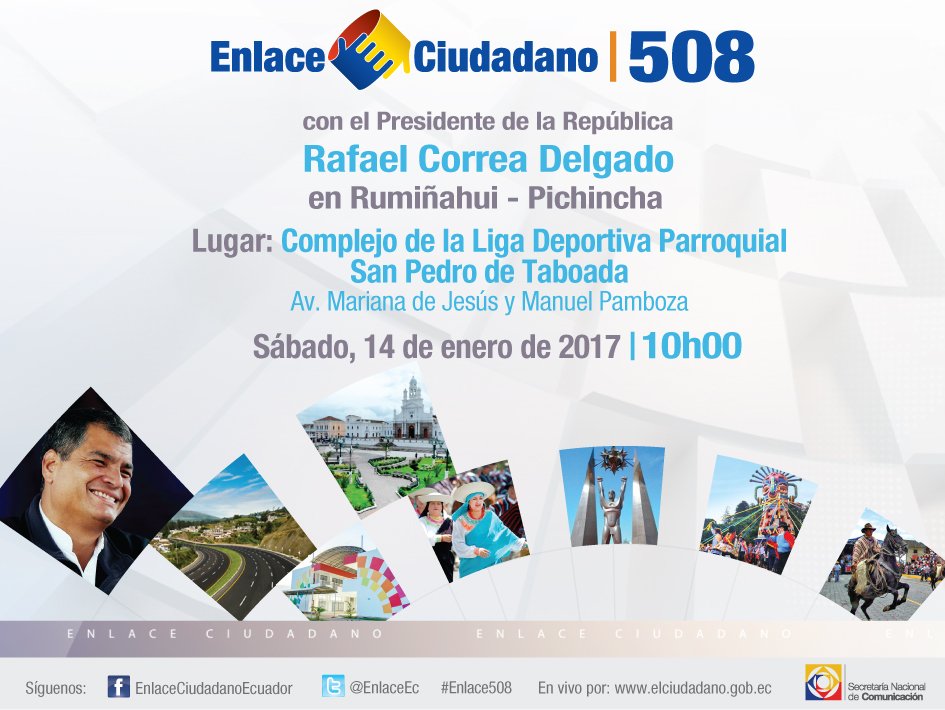 Siga el #Enlace508 con el Presidente @MashiRafael desde San Pedro de Taboada por: http://www.elciudadano.gob.ec pic.twitter.com/RKSOC29Hpp