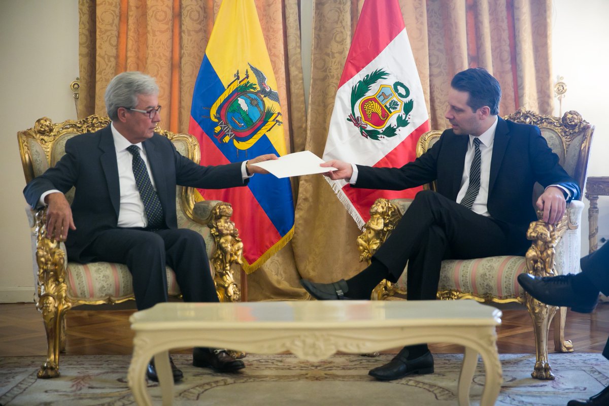 Canciller @GuillaumeLong recibió copia de Cartas Credenciales del nuevo Embajador de #Perú, Hugo Otero Lanzarotti.