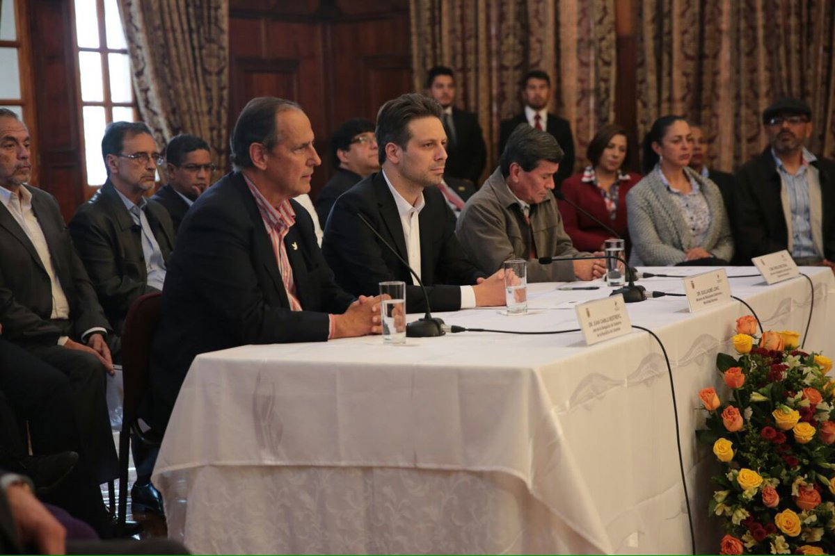 Representantes del Gobierno de #Colombia y del #ELN agradecieron a Ecuador por acoger los diálogos de paz. #PazParaColombiapic.twitter.com/SshrD4nfhR
