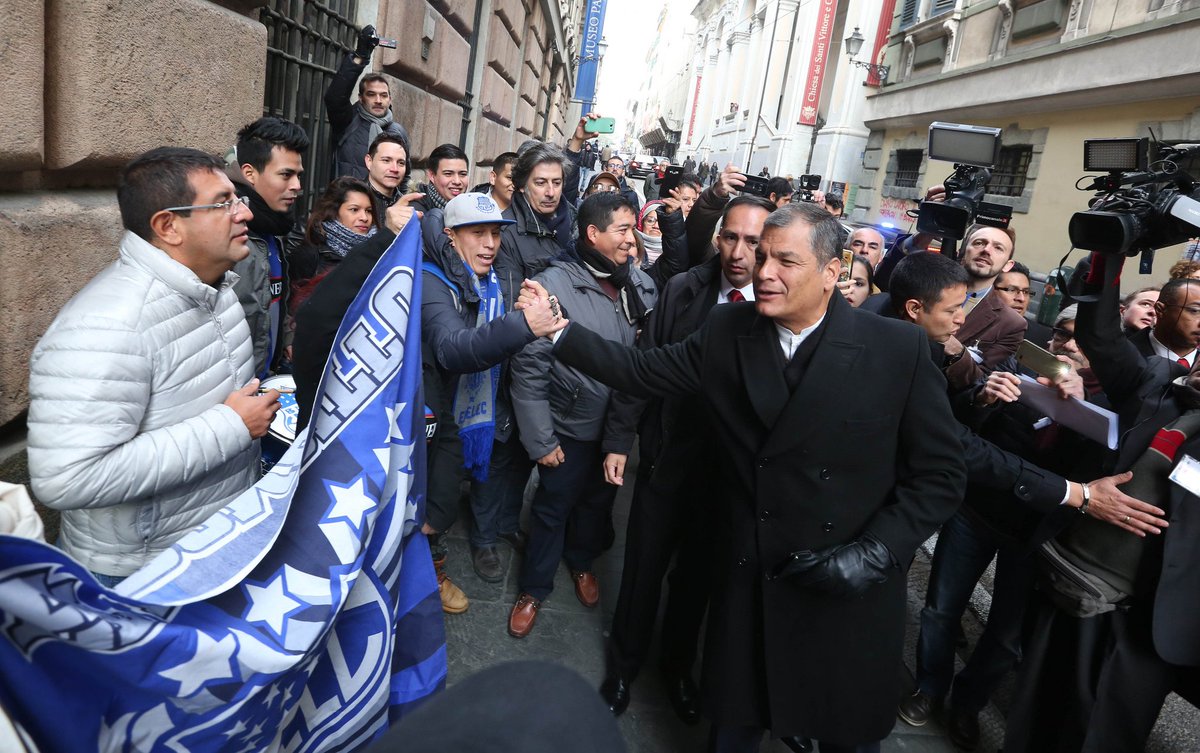 Ecuatorianos residentes en #Génova dieron la bienvenida al Presidente @MashiRafael Fotos: @Presidencia_Ec #EconomíaEnBicicletapic.twitter.com/xLfRkBAh9k