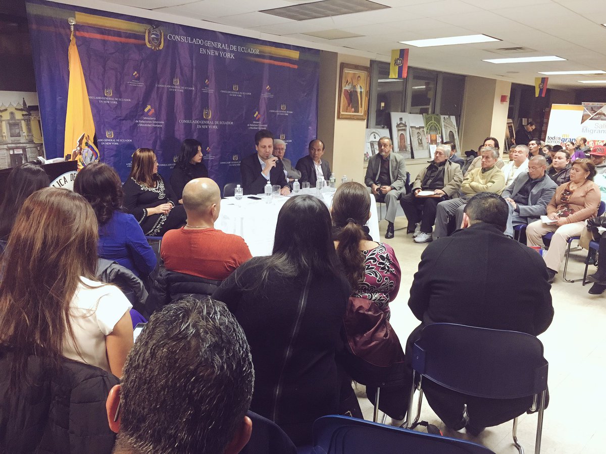#EcuadorConmigo | Canciller @GuillaumeLong anuncia ampliación de horarios en consulados en #EEUU ante comunidad migrante ecuatoriana.pic.twitter.com/Uye0JLf6DE