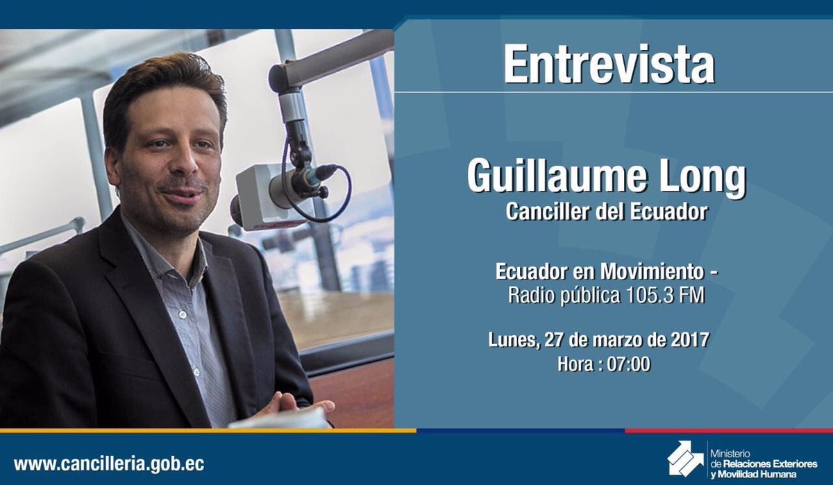Hoy - 7h00 I Entrevista al Canciller @GuillaumeLong por @radiopublicaEC en el programa #EcuadorEnMovimientopic.twitter.com/cfZJEjpVge