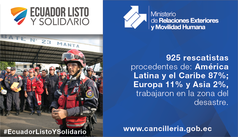 925 rescatistas de diferentes regiones trabajaron en zonas de desastre tras sismo del #16A. #EcuadorListoYSolidariopic.twitter.com/D3Cm97jOj7