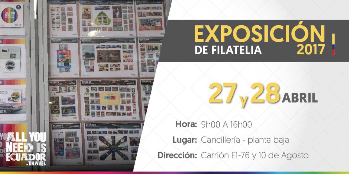 Exhibición filatélica se lleva a cabo en @CancilleriaEc este 27 y 28 de abril. #ForoPostalEcuador2017https://twitter.com/TurismoEc/status/857624841435983875 …
