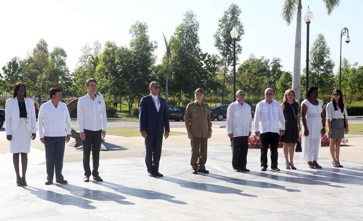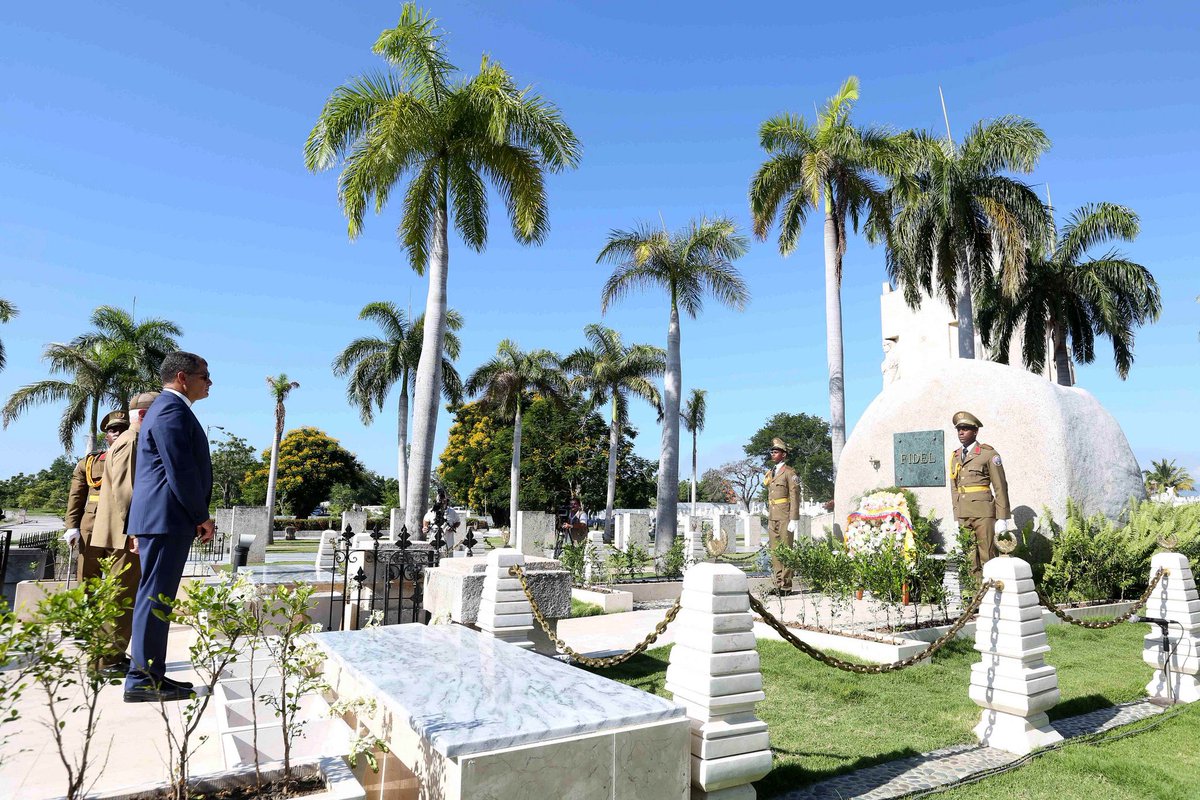En #VisitaOficialCuba, @GuillaumeLong acompañó a @MashiRafael a entrega de ofrenda floral en la tumba del Comandante en Jefe, Fidel Castro.pic.twitter.com/LCJDRNSCAB