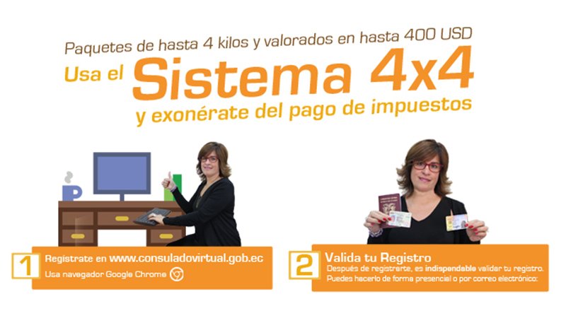 Migrantes ecuatorianos en #Madrid podrán exonerarse del impuesto en envío de paquetería 4×4