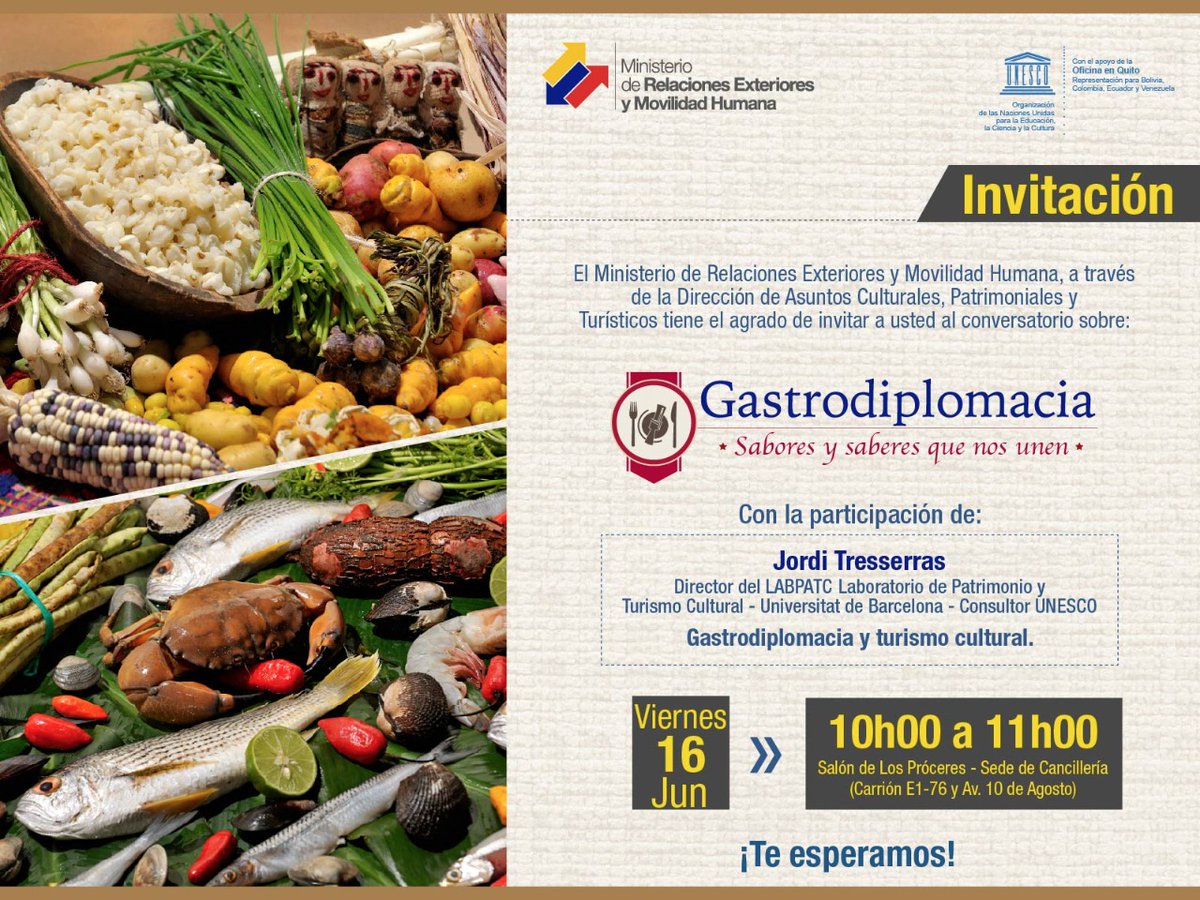 .@CancilleriaEc realizará conferencia sobre #GastroDiplomacia con el profesor Jordi Tresserras de @UniBarcelona http://bit.ly/2s5eWlC pic.twitter.com/ZW4gMQ8rz3