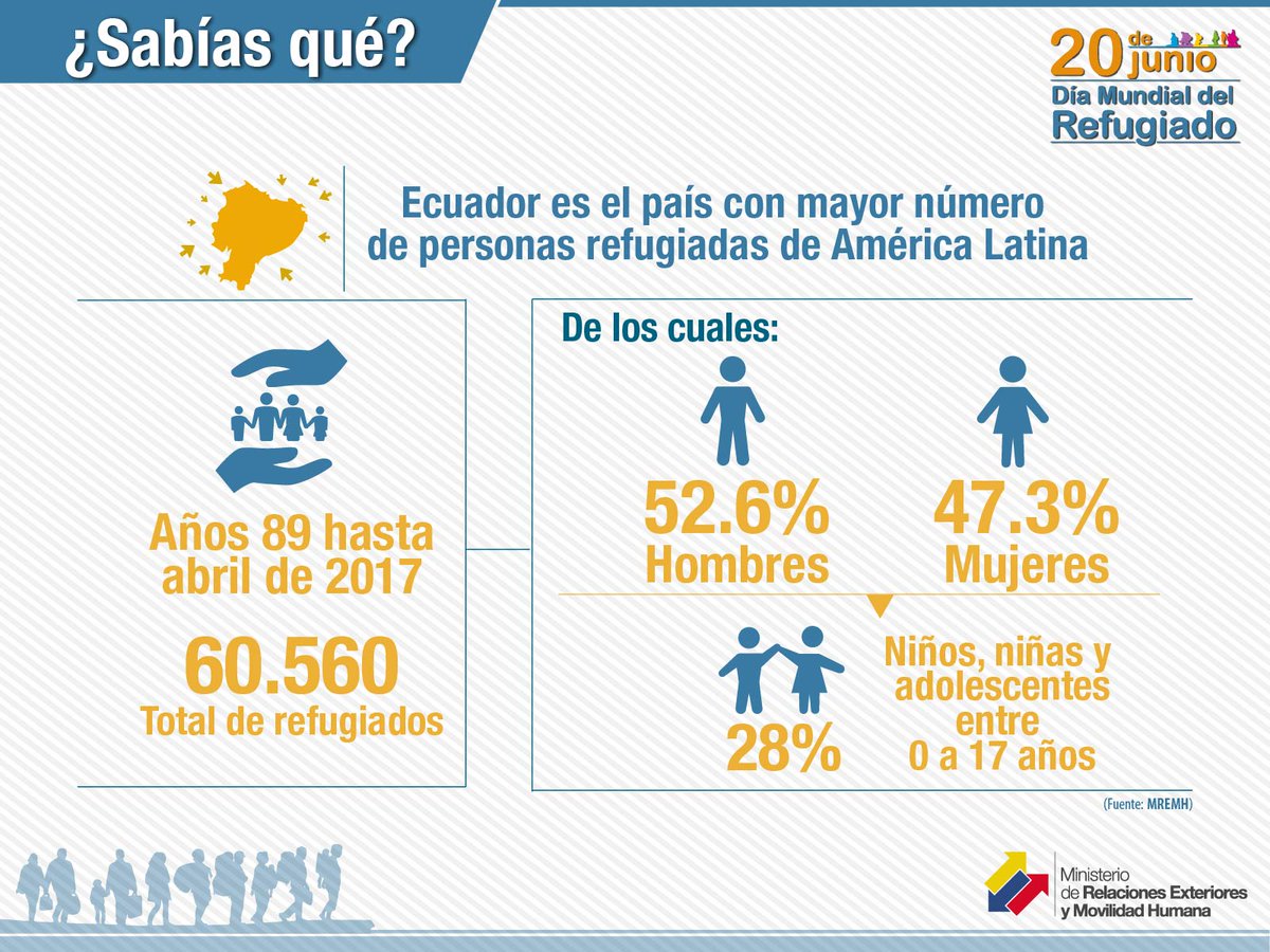 Ecuador es un Estado receptor de migraciones jugando un rol protagónico en acogida y protección de refugiados. #DíaDelRefugiadopic.twitter.com/2JjWeo1vgb