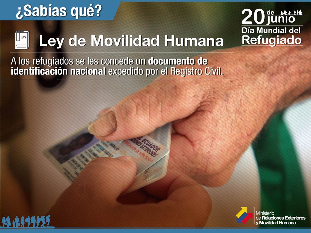A los refugiados en Ecuador se les concede un documento de identificación nacional expedido por el Registro Civil. #DíaDelRefugiadopic.twitter.com/ltaX9dDRNy