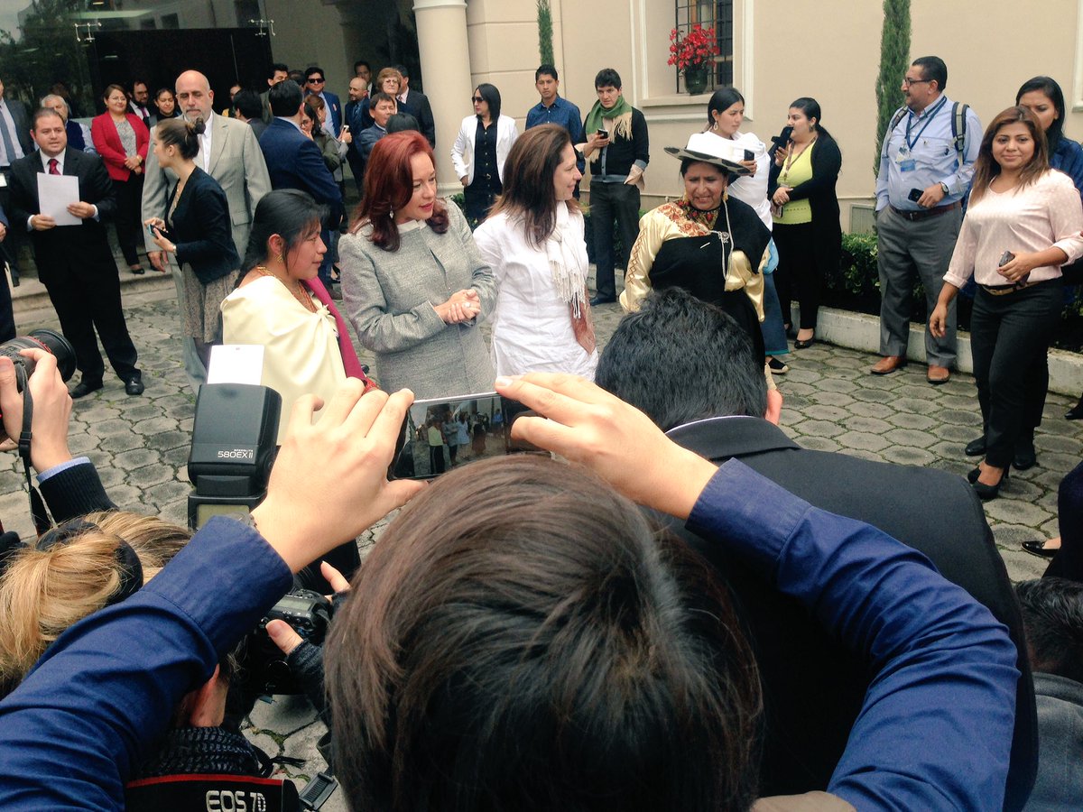 Canciller @mfespinosaEC recibe a ciudadanos que se congregan para festejar el #IntiRaymiE en el Palacio de Najas, sede de @CancilleriaEcpic.twitter.com/YkwXVgkJrJ