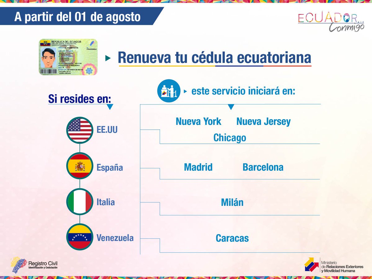 Ecuatoriano en el exterior a partir del 1 de agosto podrás renovar tu cédula y actualizar tu información #EcuadorConmigo #MásCercaDeTipic.twitter.com/pRypYX0g69