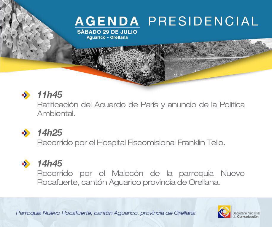 Conoce la agenda que hoy cumplirá el presidente @Lenin Moreno en Aguarico - Orellana. pic.twitter.com/7NHrnpP70x