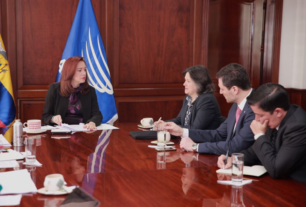 Canciller @mfespinosaEC se reunió hoy con @JessicaFaieta directora de @PNUDLAC para tratar temas de interés común #EcuadorCentroDelMundopic.twitter.com/ZwrzqaJcmV