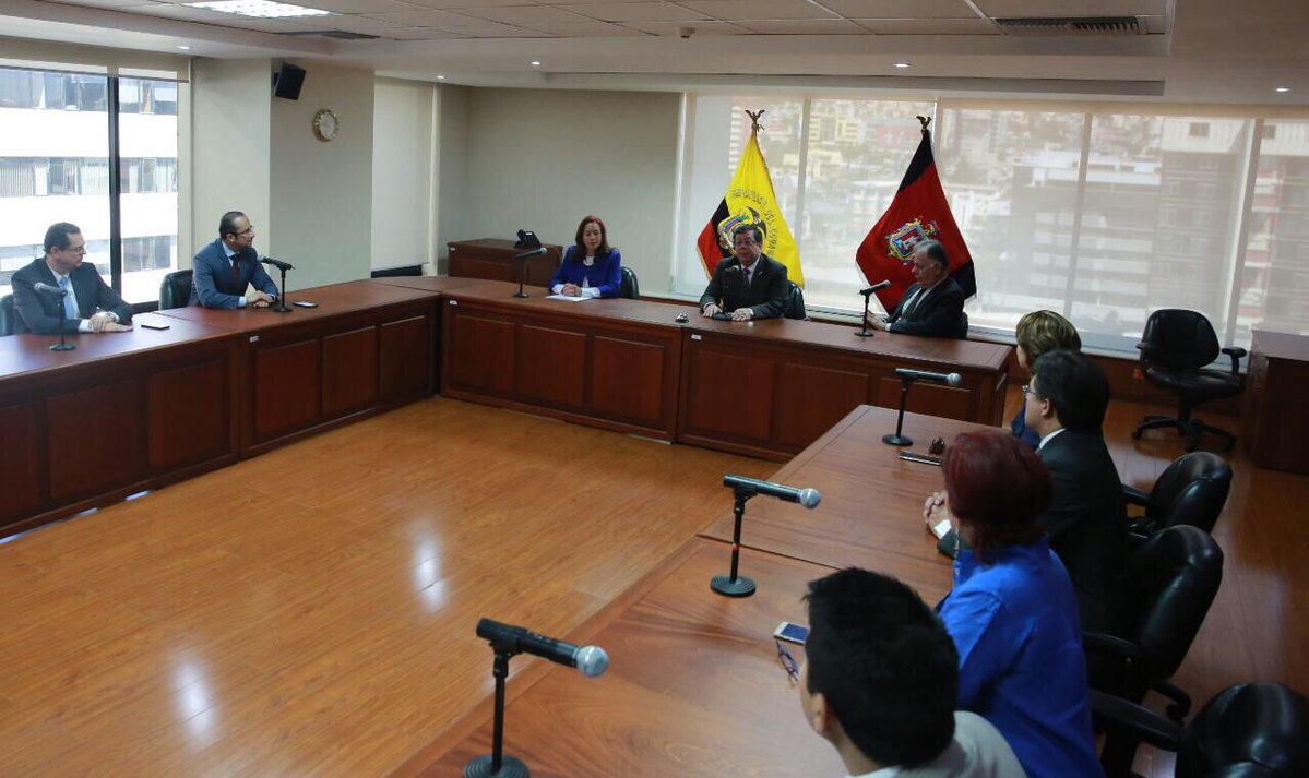 Canciller @mfespinosaEC junto a miembros del Frente de Transparencia y #LuchaContraLaCorrupción dialogan con el Presidente de @CorteNacionalpic.twitter.com/5wZ2xoZ3BR