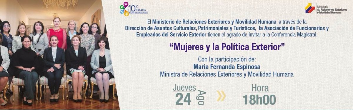 Conferencia magistral @mfespinosaEC "Mujeres y la Política Exterior" #A0Gradospic.twitter.com/li2KPNQSoo