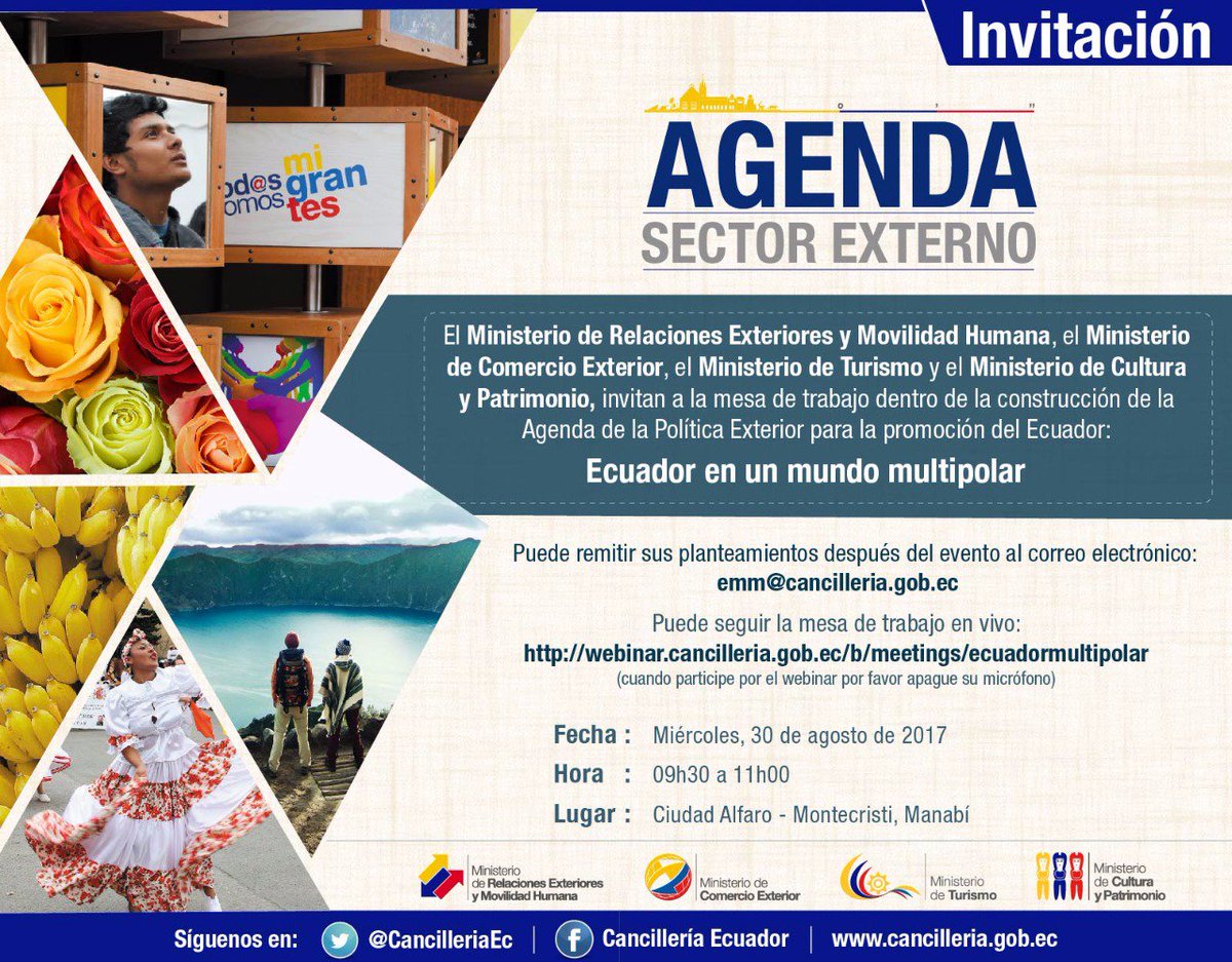 🗓30 de agosto ➤ Mesa Ecuador en un Mundo Multipolar se realizará en #Montecristi. #EcuadorCentroDelMundo Participa http://bit.ly/2vjGUcR pic.twitter.com/48xrNSv1jm