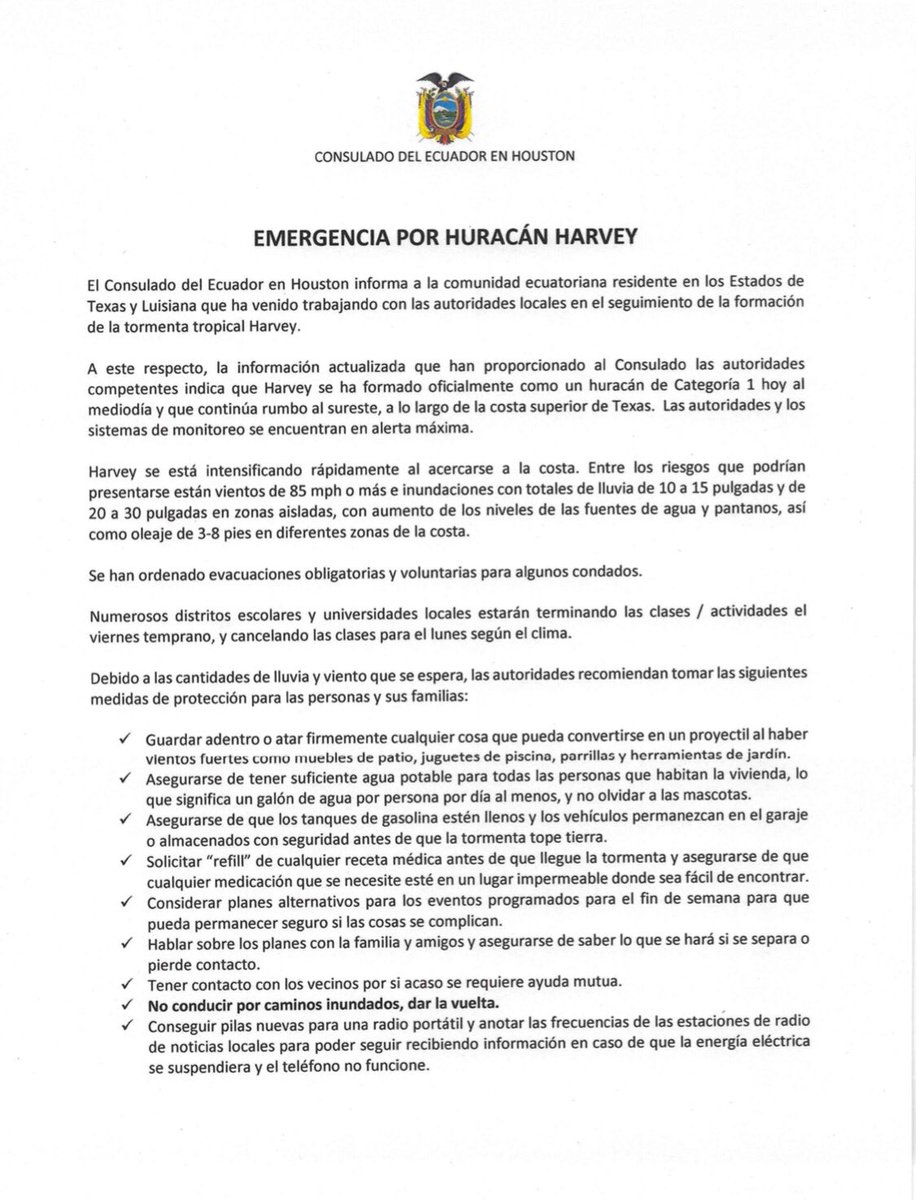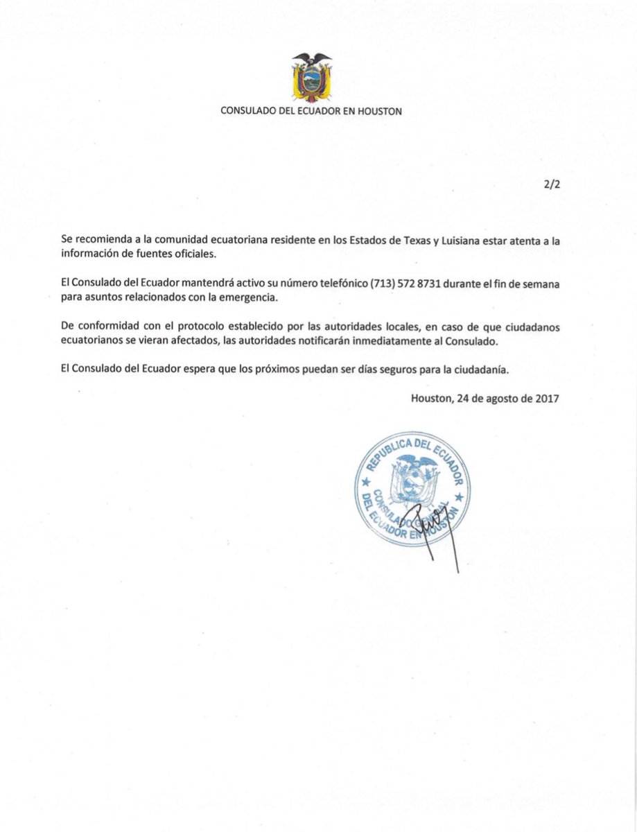 .@CancilleriaEc mantiene contacto permanente con @CECUHOUSTON para asistir a conciudadanos residentes en área de Houston. #EcuadorConmigohttps://twitter.com/cecuhouston/status/900905130094211072 …
