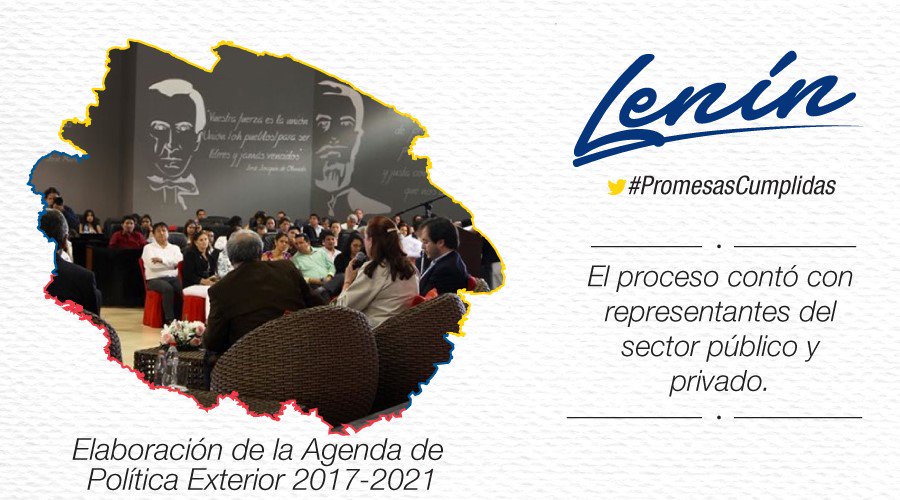 #EcuadorCentroDelMundo El Gobierno Nacional a junto a la ciudadanía elaboró la Agenda de política Exterior 2017-2021 #PromesasCumplidaspic.twitter.com/XugVYohdpF