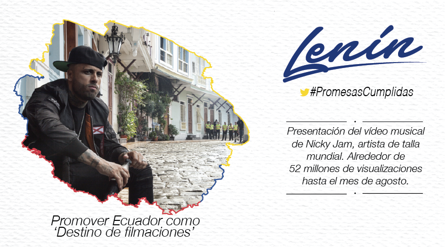 Se empezó a promover a Ecuador como un destino de filmaciones desde el lanzamiento del video musical de Nicky Jam #PromesasCumplidaspic.twitter.com/sXn4hz3NXx