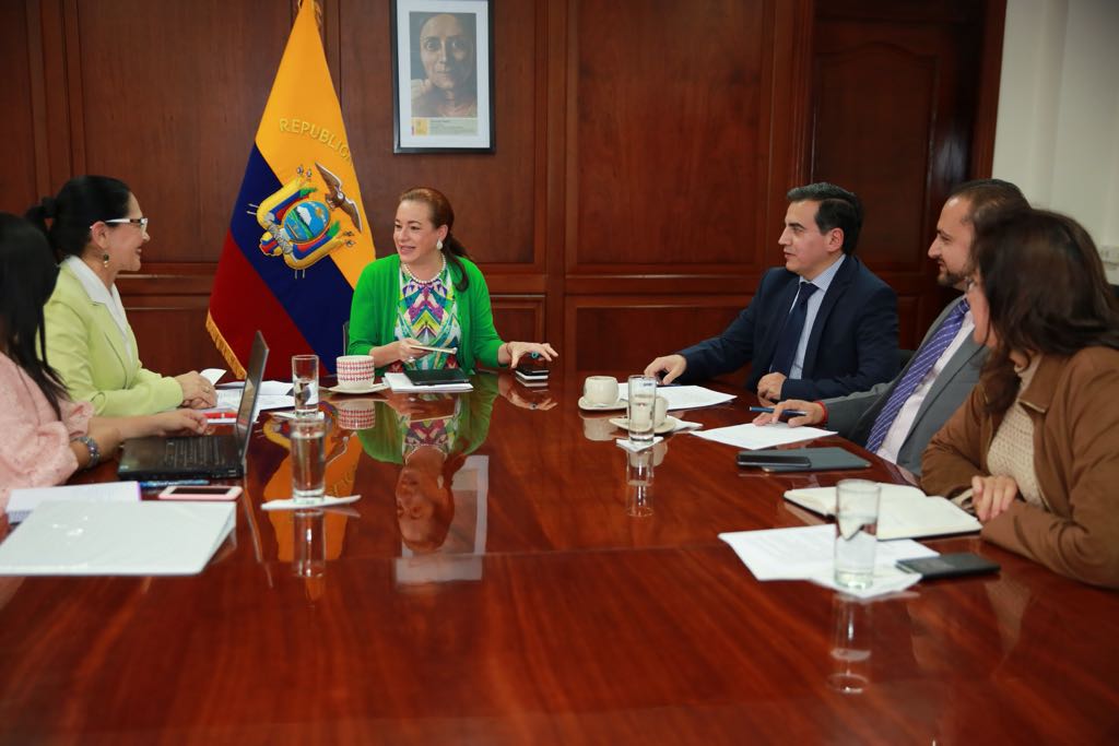 Canciller @mfespinosaEC en reunión con Ministra @EvaGarciaFabre sobre cooperación internacional para fomento al sector productivo.pic.twitter.com/nzwYKLeWpA