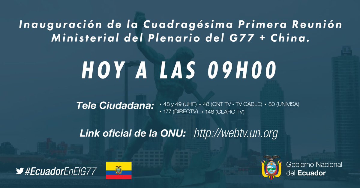 #EnVivo | Inauguración de la 41° reunión del plenario G77+China en #UNGA. Síguela por: http://www.cancilleria.gob.ec | #EcuadorEnElG77https://twitter.com/ComunicacionEc/status/911227311332216832 …