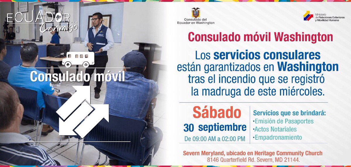 Compatriota en #Washington: accede los servicios ciudadanos en el #ConsuladoMóvil este sábado de 9h00 a 14h00. #EcuadorConmigopic.twitter.com/zmYpenWUxl