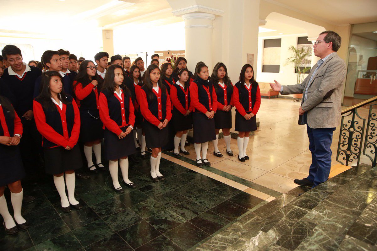 Estudiantes del Colegio #24deMayo visitaron hoy la exposición gráfica sobre la diplomacia ecuatoriana: "Una mirada al mundo". #A0Gradospic.twitter.com/uDNIlSeuVH