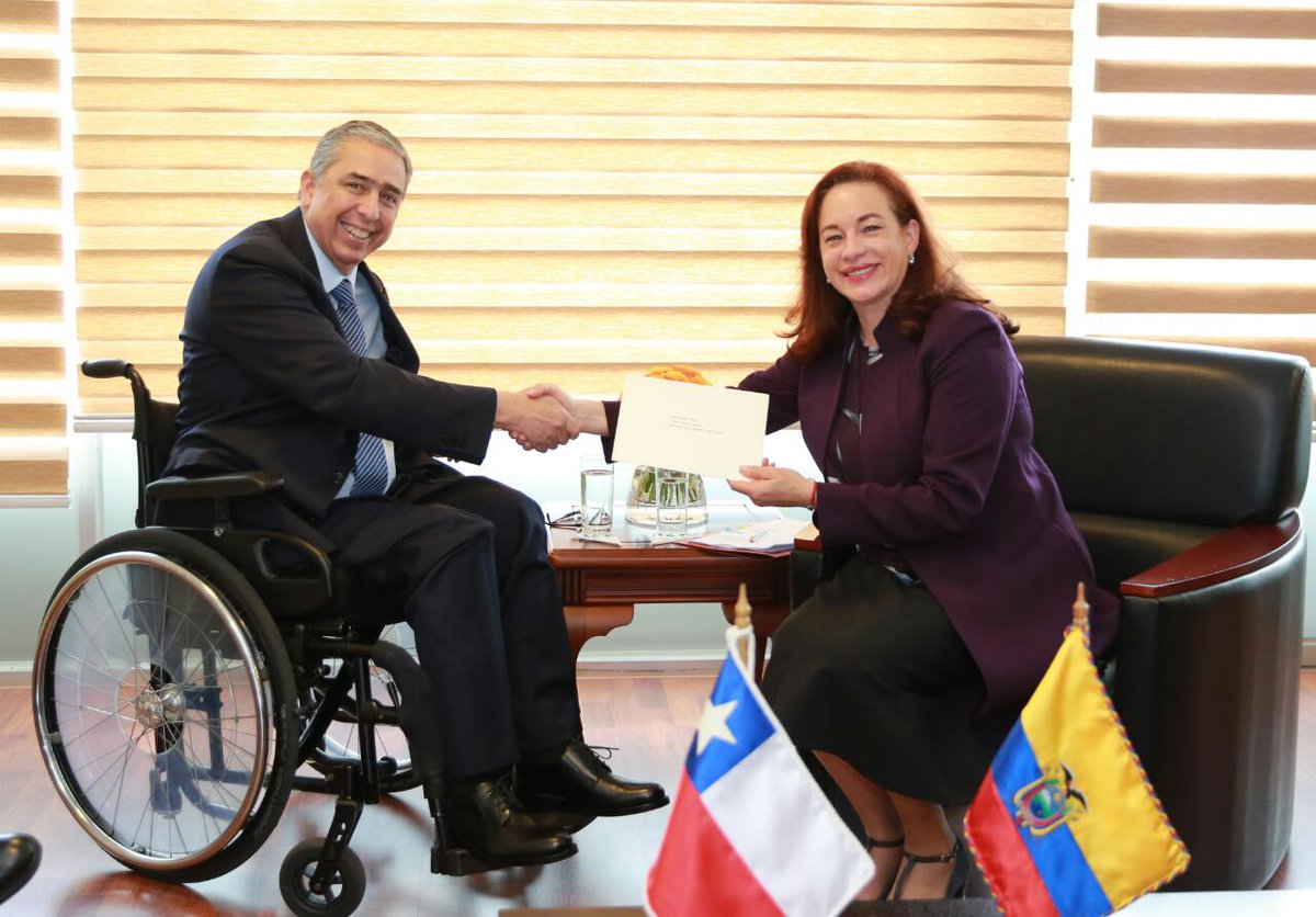 Canciller @mfespinosaEC recibió hoy la Copia de Cartas Credenciales del Embajador de Chile en Ecuador, Eduardo Tapia Ripel.