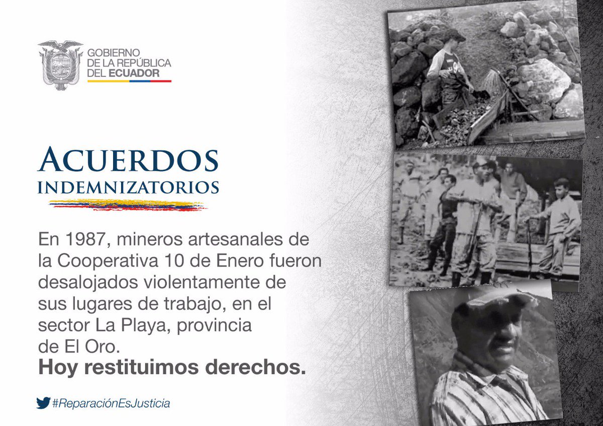 Hoy se restituyen los derechos de mineros artesanales violentamente desalojados, en provincia de El Oro, hace 30 años. #ReparaciónEsJusticiapic.twitter.com/9p3k07uwTF