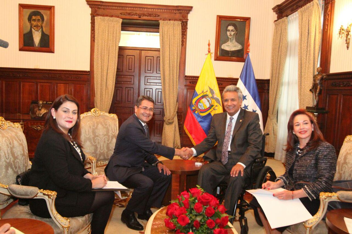 Canciller @mfespinosaEC acompañó al Presidente @Lenin Moreno en reunión con su homólogo hondureño @JuanOrlandoH #VisitaHondurasEC