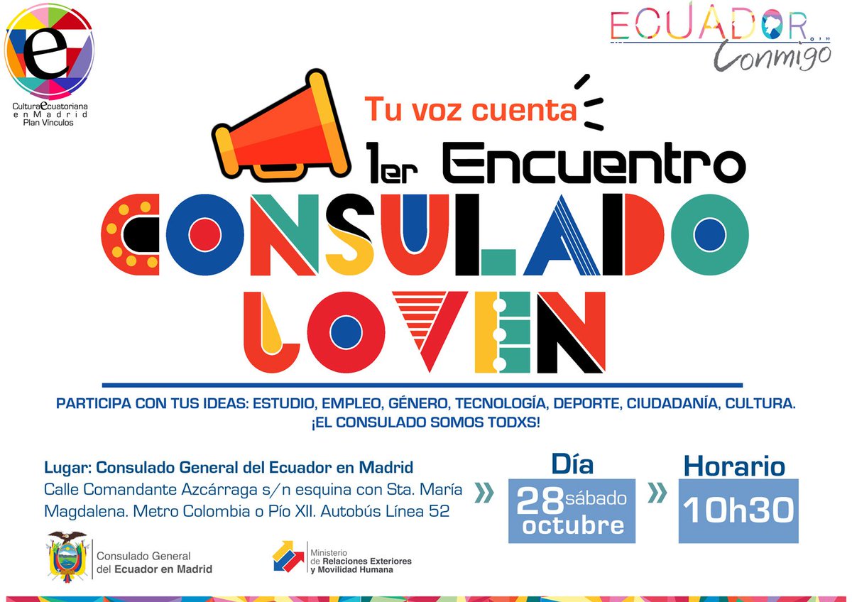 Compatriota en Madrid: El Consulado @cecumad te invita a participar el sábado 28 de octubre - 10h30 en el 1er Encuentro #ConsuladoJovenhttps://twitter.com/cecumad/status/921297467601248258 …