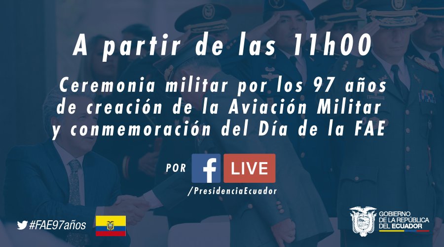 Siga en vivo la transmisión de la conmemoración de #FAE97años y día de la Fuerza Aérea Ecuatoriana por: http://www.cancilleria.gob.ec https://twitter.com/ComunicacionEc/status/923937365646770177 …