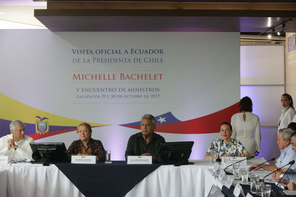"Trataremos temas de cooperación en defensa, inclusión, desarrollo social, interconexión eléctrica..." @mfespinosaEC #VisitaChileEC 1/2pic.twitter.com/WS7IpdB8la