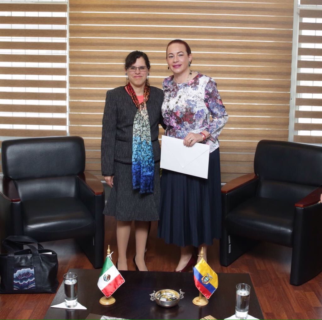 Canciller @mfespinosaEC recibe la copia de Cartas Credenciales de @YaneritMorgan, embajadora de #México