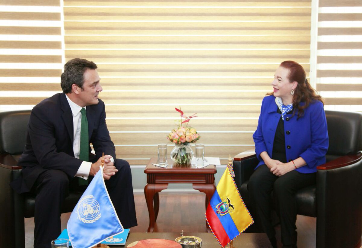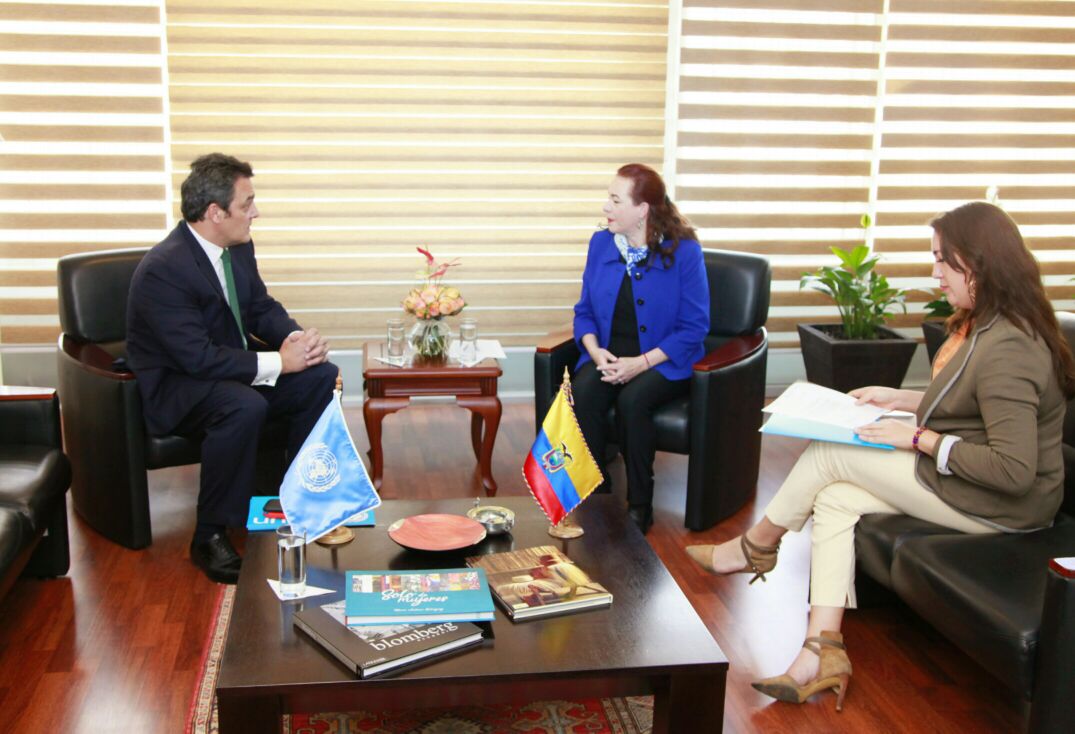 Canciller @mfespinosaEC mantuvo reunión con Joaquín González Alemán, representante de @UNICEF en nuestro país. En el encuentro ratificó compromiso de Ecuador con los derechos humanos. #EcuadorCentroDelMundopic.twitter.com/ohXewNGrrM