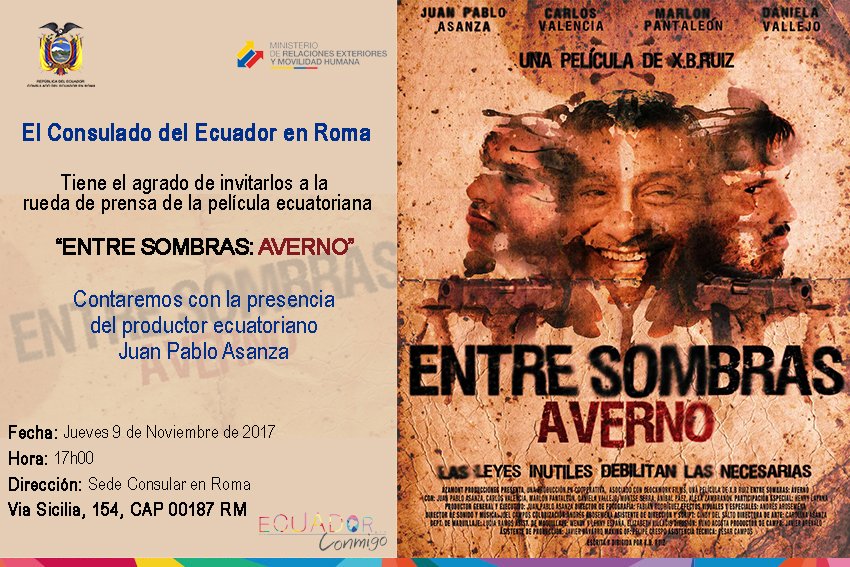 En el Consulado del Ecuador en Roma se presenta en rueda de prensa la película ecuatoriana “Entre Sombras: Averno“ @EntreSombraspel con el productor ecuatoriano Juan Pablo Asanza.https://twitter.com/romaconsuldor/status/928286455021088768 …