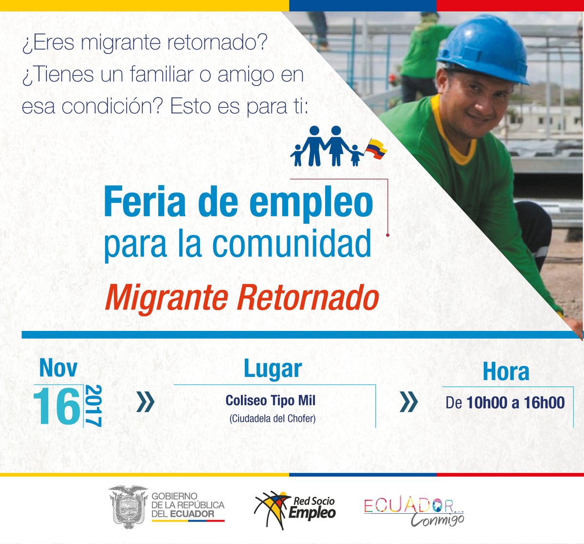 Jueves - 10H00 | Feria de Empleo para migrantes retornados llega a #Azogues. Acude con tu hoja de vida al Coliseo Tipo Mil. ¡Te esperamos! #PorUnEcuadorConTrabajopic.twitter.com/YJGRtiVfiq