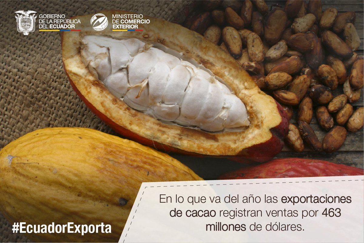 Gracias a nuestras tierras fértiles y proceso de producción nuestro cacao es el protagonista en varios países. Por ello nuestras exportaciones crecen mes a mes. #EcuadorExportapic.twitter.com/m0RaLWCxkT