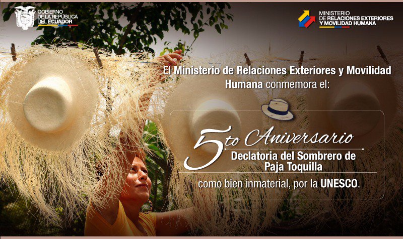 Celebramos el aniversario de la declaratoria del #SombreroDePajaToquilla como bien inmaterial por la @UNESCOpic.twitter.com/LuFILZHJDt