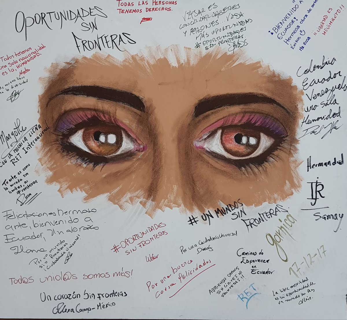 Compartimos la pintura realizada por Kevin Garnica y los mensajes escritos por ciudadanos en la feria del #DíaDelMigrante organizada por @CancilleriaEc. #OportunidadaesSinFronteraspic.twitter.com/AW0X3litvA