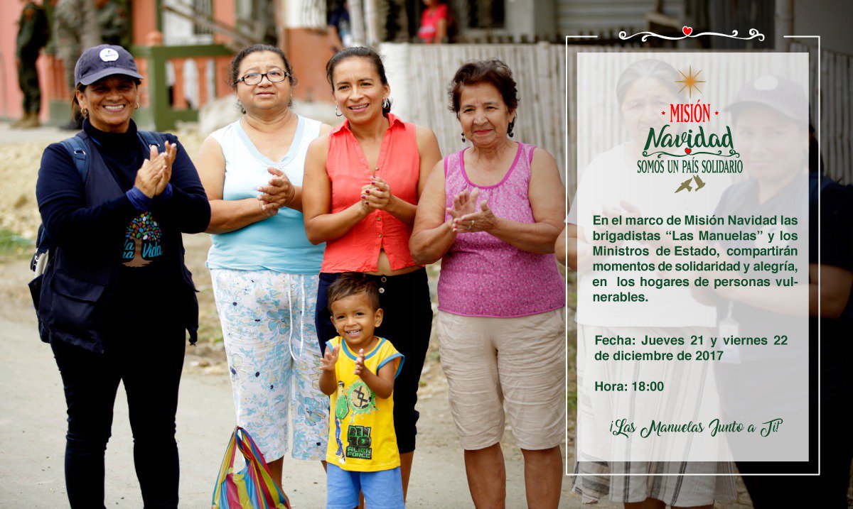 @LasManuelasEc junto a todos los ministros de Estado compartirán momentos de solidaridad con personas de grupos de atención prioritaria, en distintos rincones del país para pasar una #NavidadContigo #LaMisiónContinúa. pic.twitter.com/COGhy65YyS