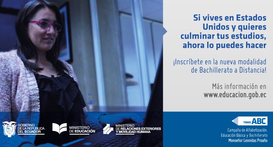 #TodosABC | Compatriota en #EEUU ahora puedes culminar tus estudios de secundaria a través del Bachillerato Virtual. Inscríbete en los consulados del Ecuador. #EcuadorConmigopic.twitter.com/2SbzJi6mZB