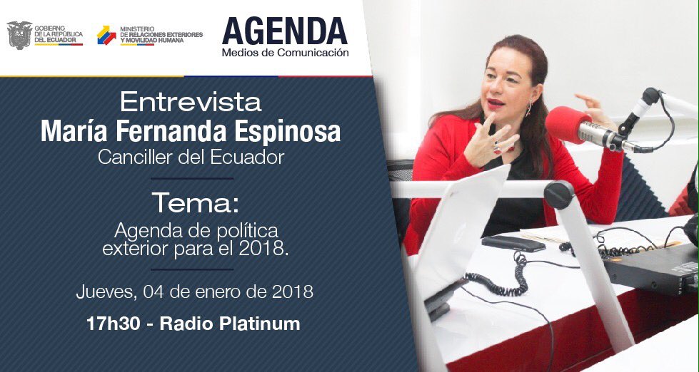 #Entrevista | Canciller @mfespinosaEC estará hoy 17h30 en @radioplatinumec comentando sobre la #PolíticaExteriorEc. Síguela en 90.9 Fmpic.twitter.com/SP1p89ggg1